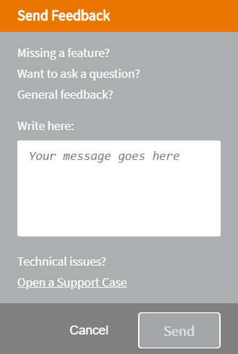 send feedback, suggestions or questions. Click Open a Support Case