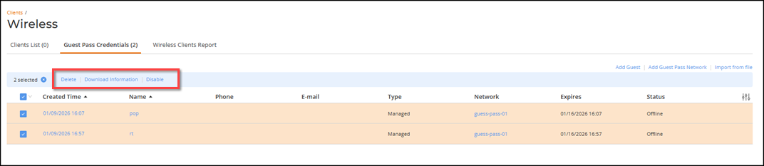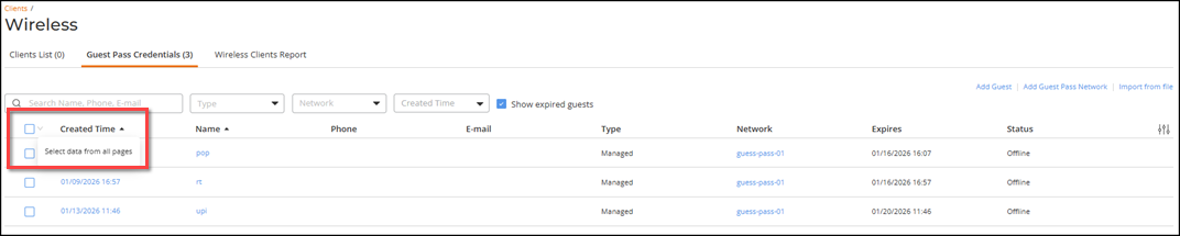This functionality streamlines workflows by reducing repetitive steps and consolidating multiple API calls into a single bulk request, such as deleting devices, rebooting APs, or disconnecting clients. Using this option helps administrators manage large datasets more efficiently.