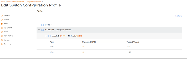 In Set Ports, select the ports to configure VLANs for the model.