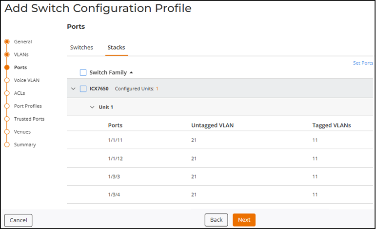 Stacks sub‑tab, you must first remove all untagged ports assigned to