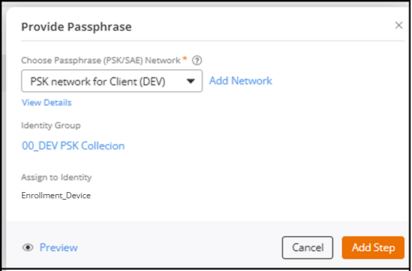 Note: You must have an Identity Group defined before adding a device authentication option. Refer to Adding an Identity Group for more information.Provide DPSK
