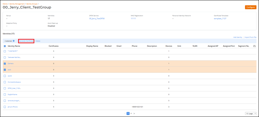 Note: You can select up to 100 identities at a